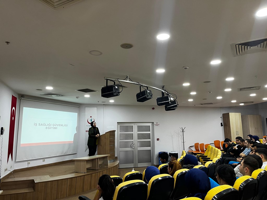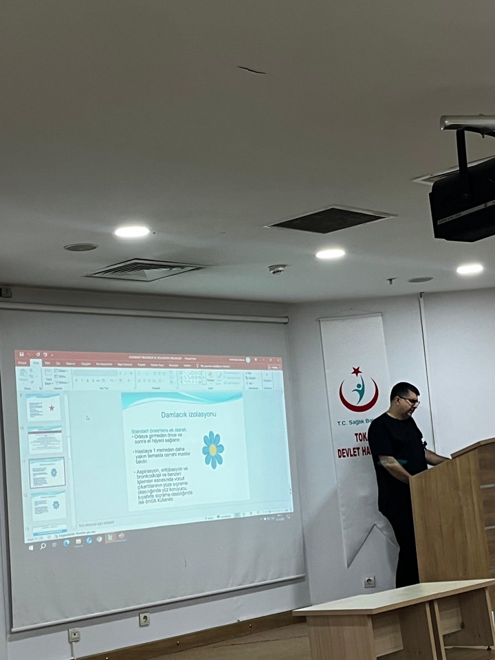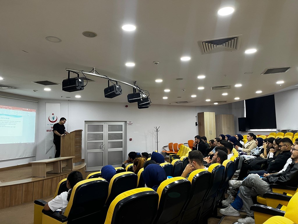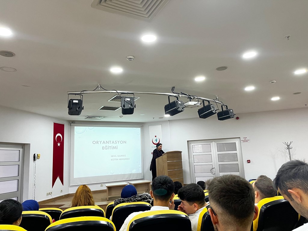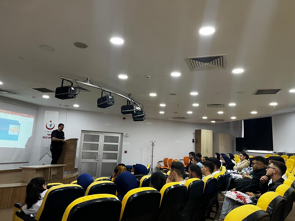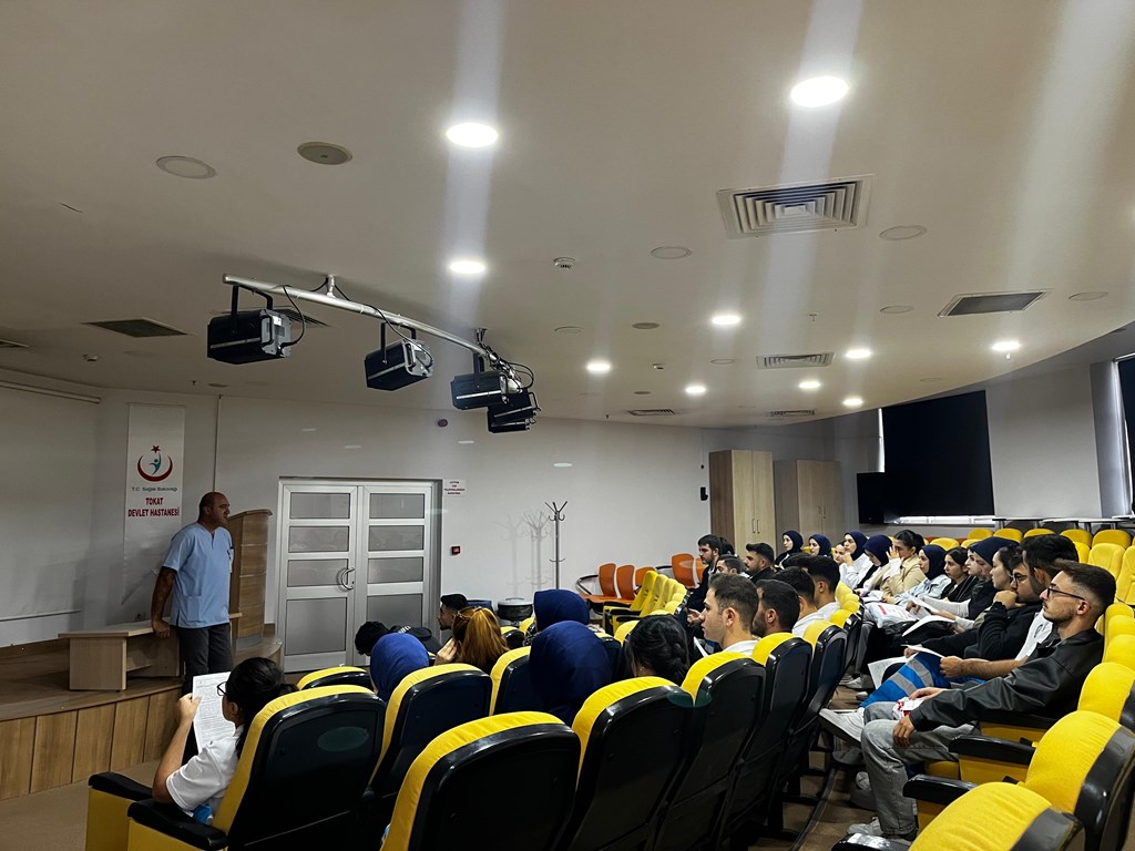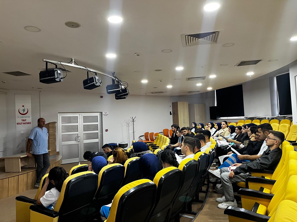 Sağlık bakım hizmetleri bölümü evde hasta bakım programı, evde hasta bakım ilke ve uygulamaları III dersi klinik uygulamalar kapsamında Tokat Devlet Hastanesi konferans salonunda uygulama oryantasyon eğitimi gerçekleştirildi. Eğitim açılışında TDH Eğitim Birimi Sorumluları Cengizhan TURGUT ve Aslı COŞKUN tarafından genel oryantasyon kuralları, klinik kuralları,kurum tanıtımı, kurum yönetim yapısı hakkında bilgilendirilmeler gerçekleştirildi. Akabinde çevre mühendisi Mehmet EMİN DİNCEL tarafından atık yönetimi, Enfeksiyon Kontrol Hemşiresi Oğuz POLAT tarafından enfeksiyon kontrol süreçleri, eğitim Hemşiresi Sevil GAMSIZ tarafından eğitim süreçleri ve İSG uzmanı Kübra AYDIN tarafından ise İş Sağlığı ve Güvenliği uygulamaları hakkında bilgilendirilmeler yapıldı.